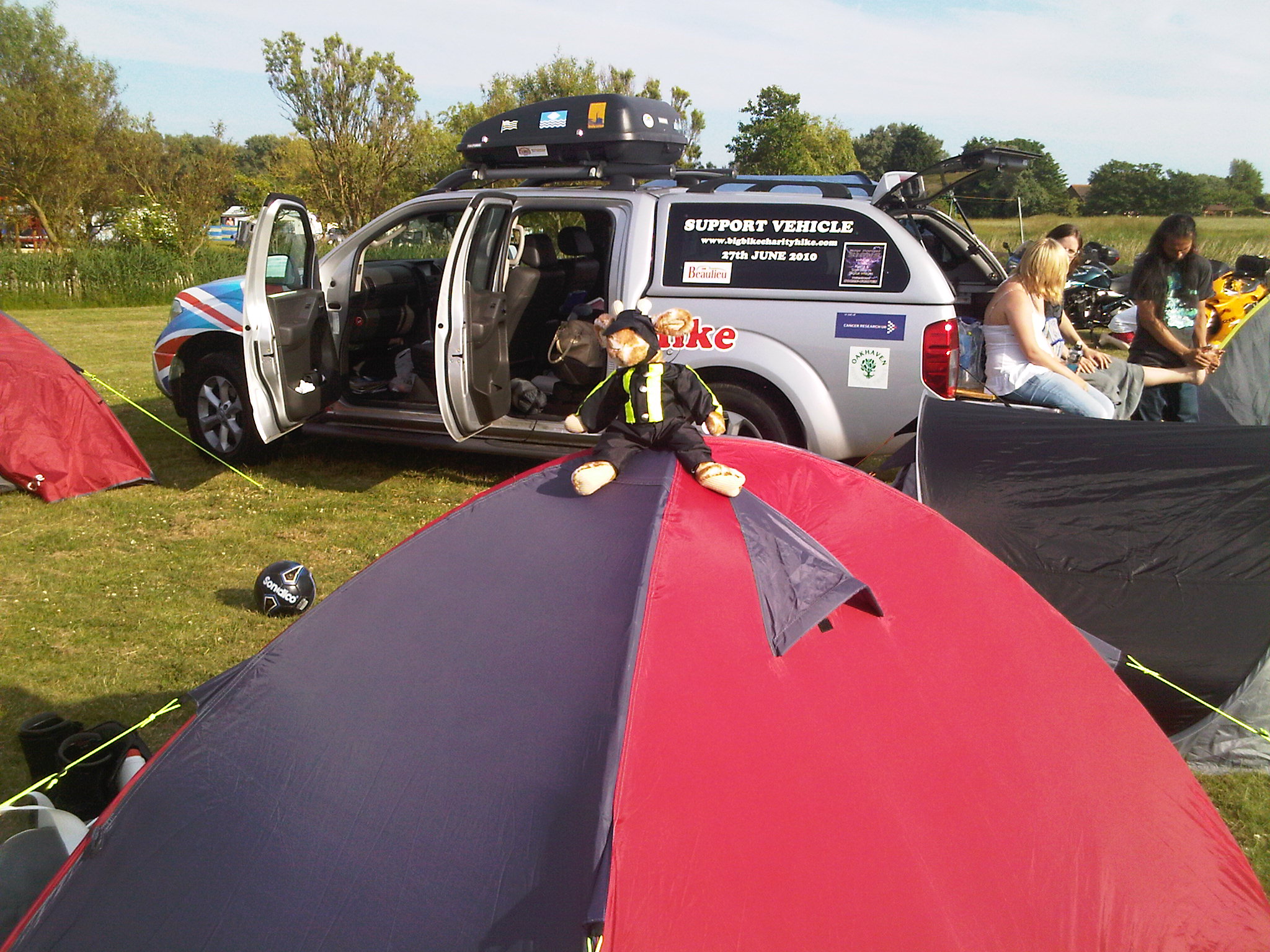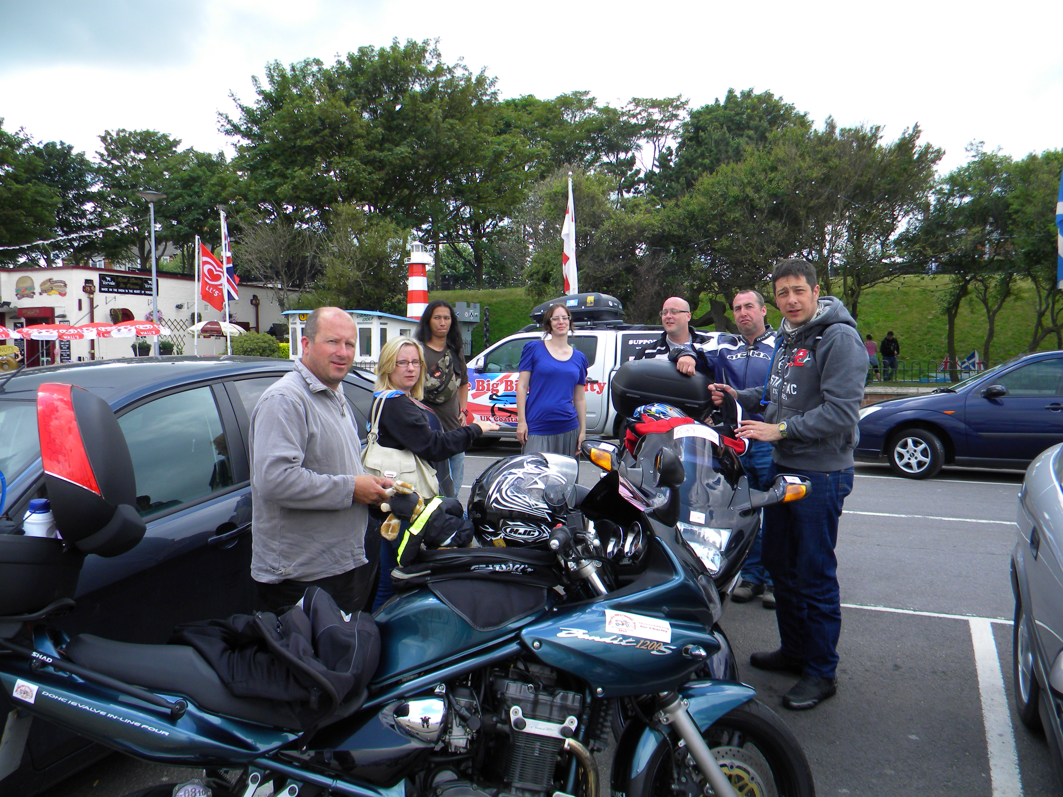 This was the event that started the whole thing off, riding big bikes around the coast of the UK, 4,000 miles in two weeks spending the nights in tents. Setting off from and finishing at Beaulieu Motor Museum, they had a support team who followed them round and set up camp etc. The weather was a mix of wet, dry, sunny, cold and windy but they made it in one piece and raised the grand sum of over £8,000 split between the two charities, Cancer Research UK and Oakhaven Hospice.